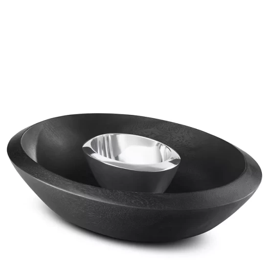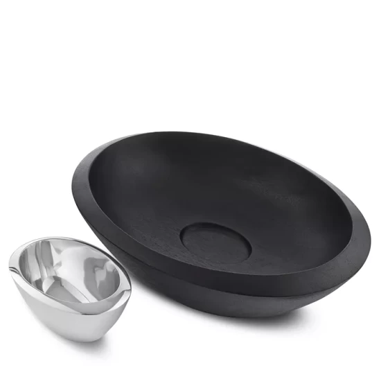 - Appearing near black in color, the Noir Collection applies a deep, rich stain to its wood components, offering a contemporary makeover to Nambe’s signature look.