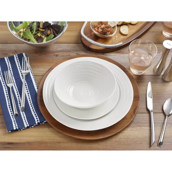 - Incorporate a wooden accent in your place settings with the Skye Wood Charger for a harmonious blend of materials.