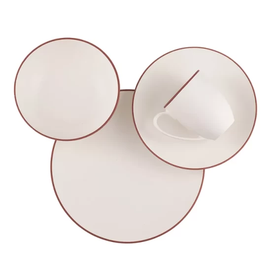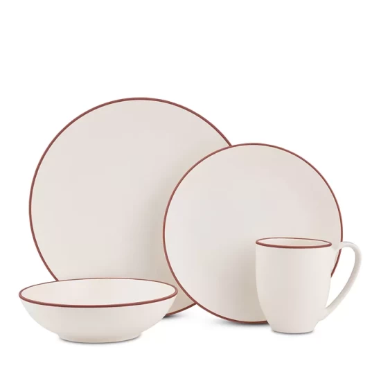 - Place setting includes one of each: dinner plate, accent/salad plate, soup/cereal bowl and mug