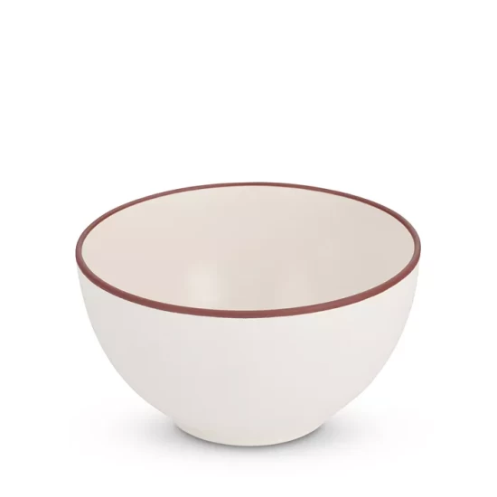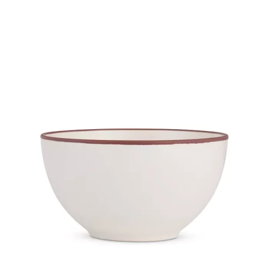 - The Taos all-purpose bowl is finished with an adobe-colored rim and a speckled, reactive glaze.