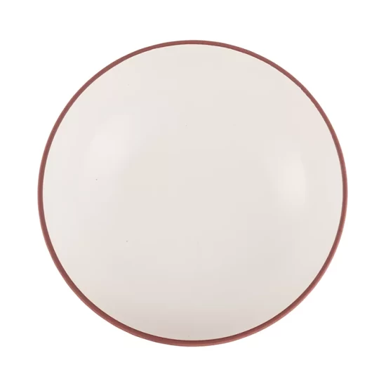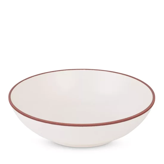 - The Taos soup/cereal bowl is finished with an adobe-colored rim and a speckled, reactive glaze.